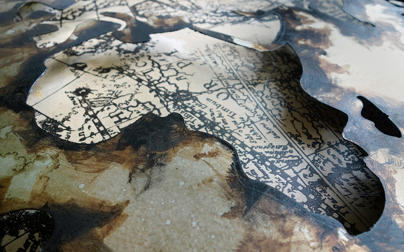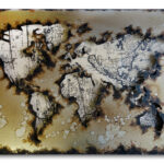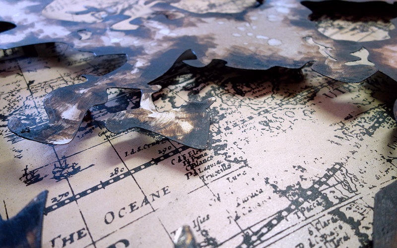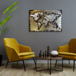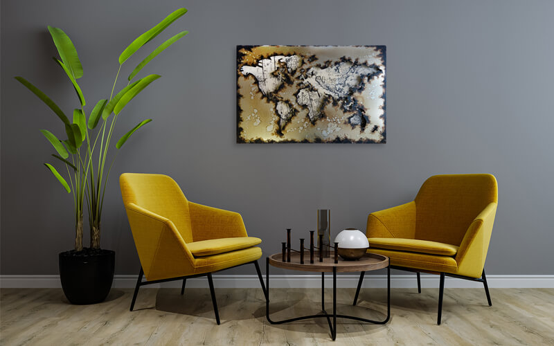 Een geweldig metalen schilderij met de kaart van de wereld uit het metaal gestanst. Een echte eyecatcher voor elk interieur. Geheel in 3D.