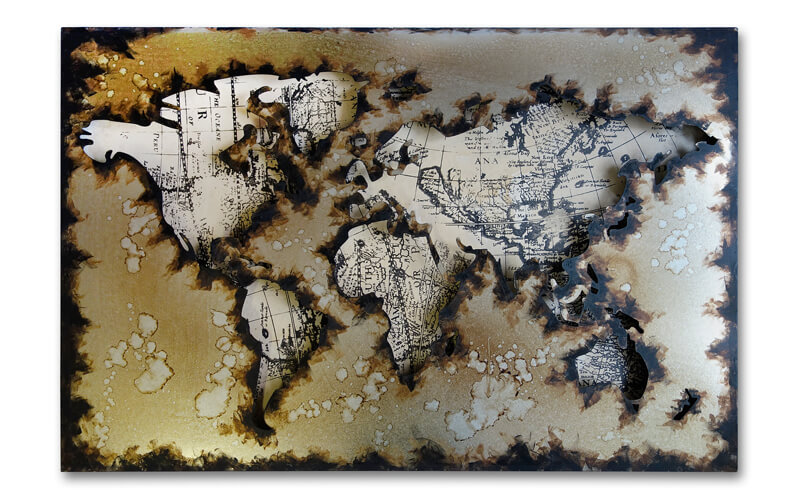 Metalen Schilderij 3D Kaart-van-de-Wereld