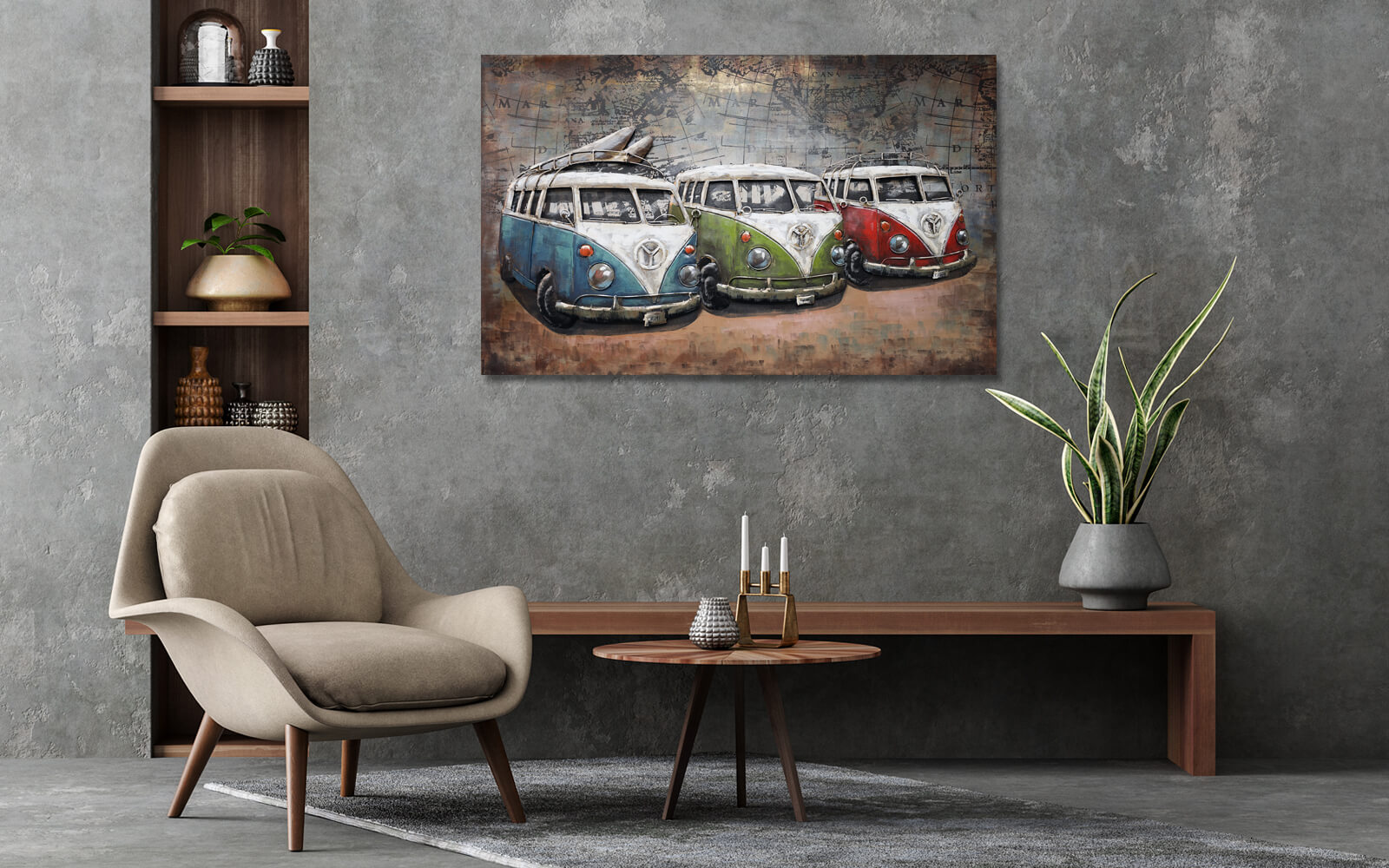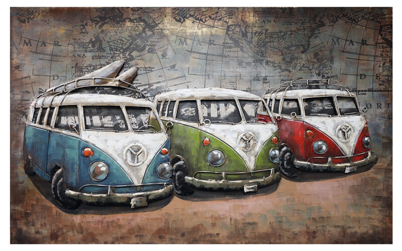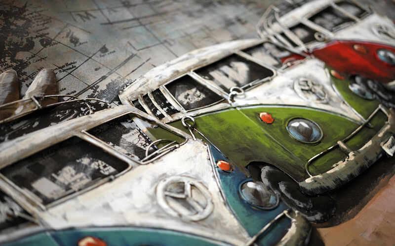 Ontdek ons prachtige Metalen Schilderij 3D VW Busjes, een meesterwerk in metaal.