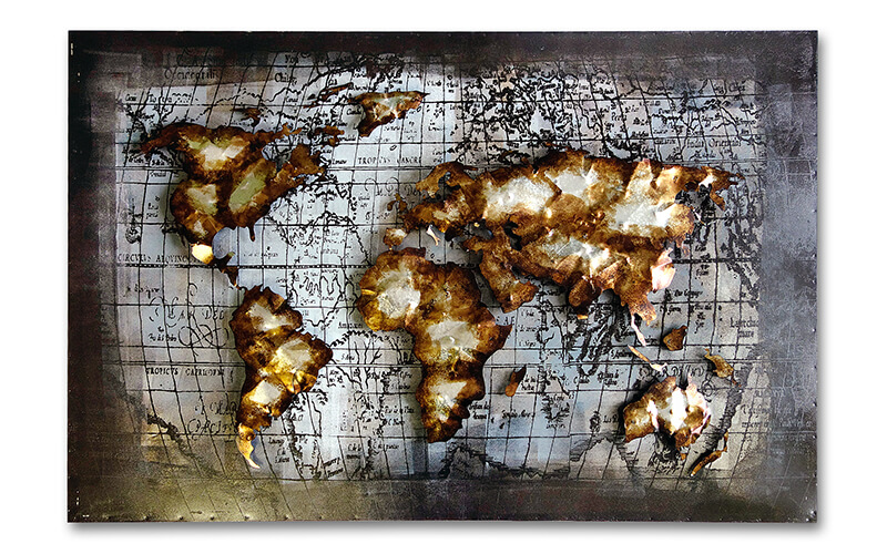 Metalen Schilderij 3D Wereldkaart