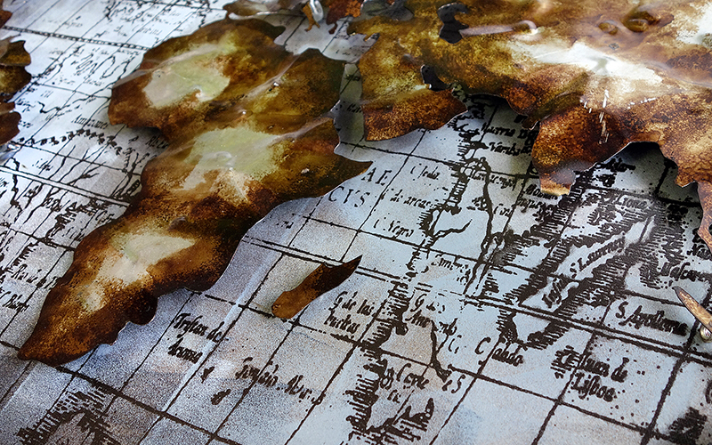 Het reliëfdesign zorgt voor een krachtige 3D-uitstraling waardoor het kunstwerk tot leven komt. De kaart is volledig vervaardigd uit metaal en straalt een stoere industriële sfeer uit. Dankzij de neutrale kleurstelling past het perfect in zowel moderne als robuuste interieurs.