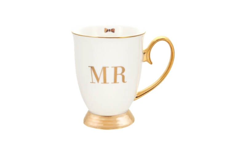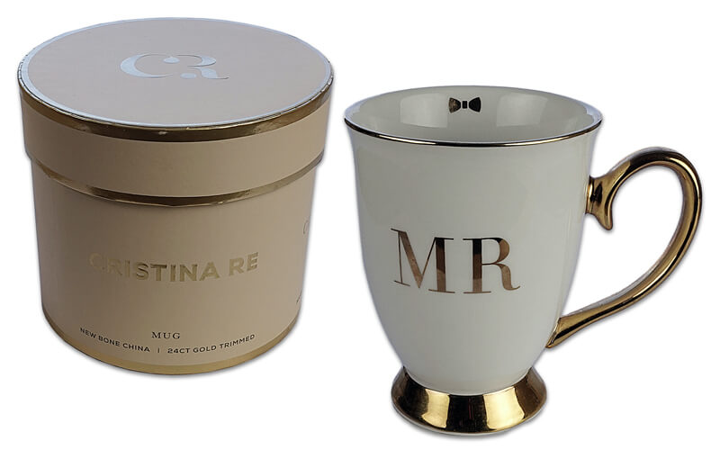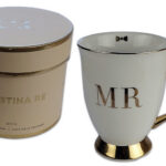 Mok MR Ivory Christina-Re. Een prachtige porseleinen beker met oor voor de bruidengom. Met 24-karaat goud afwerking. Wordt geleverd in ronde doos.