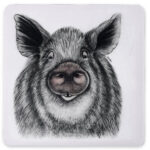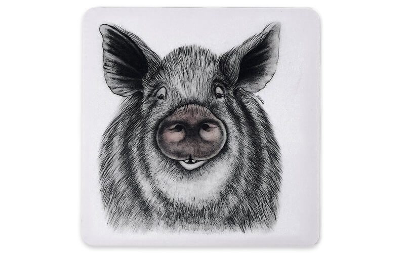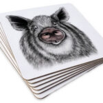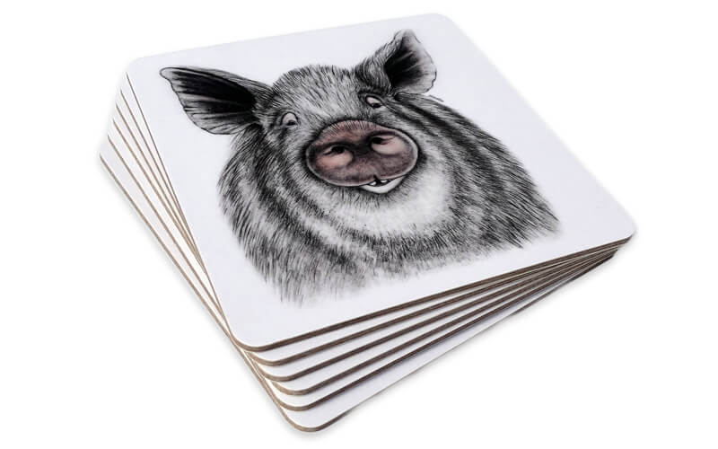 Op deze onderzetters staat “Oscar” het wild zwijn met zijn hilarische blik.
