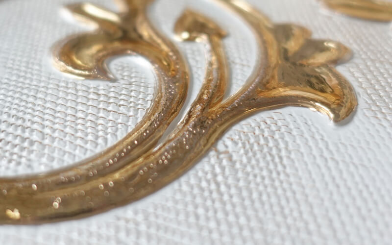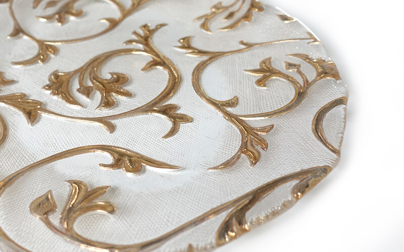 Helder glas met goud gedecoreerd d.m.v. persing