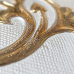 De schaal is aan de buitenkant gegraveerd en ingekleurd met goudverf. Aan de binnenkant is het glad.