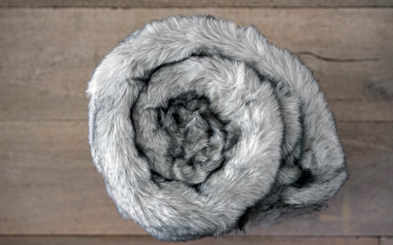De kachel iets lager en toch lekker comfortabel, dat kan met dit kleed van Cocooning , een heerlijke plaid van imitatiebont in Wolf Gris.