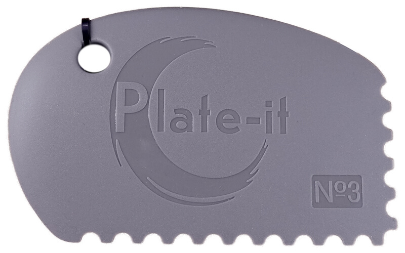3 fantastische keukenhulpen in 1 set. Drie multifunctionele Scrapers vol.1 van het merk Plate-it. Decoreer, glaceer borden en taarten in een handomdraai!