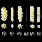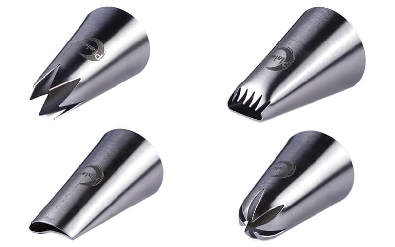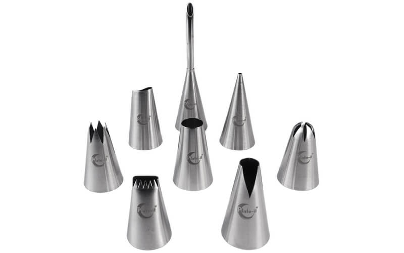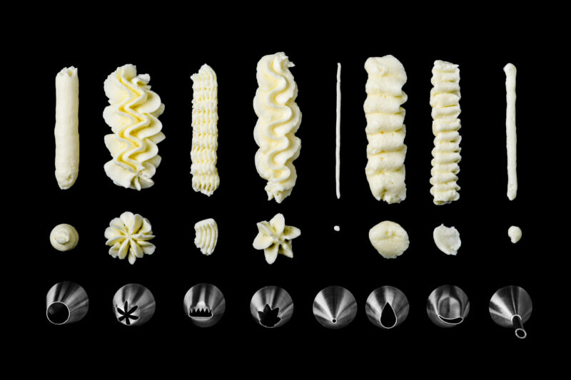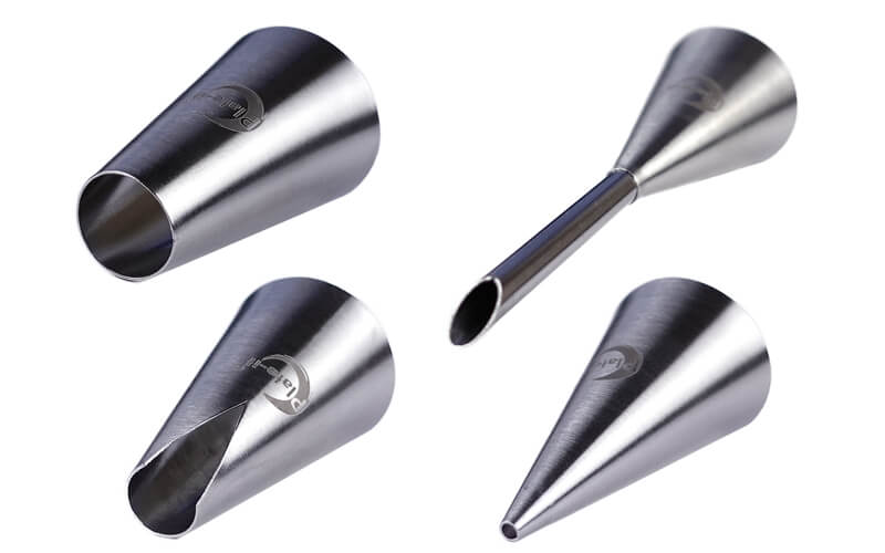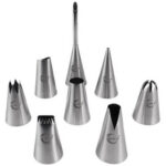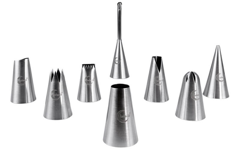 *8 Veelzijdige spuitmondjes. Van fijne lijntjes tot gedetailleerde bloemblaadjes. Met 8 verschillende spuitmondjes kun je een breed scala aan ontwerpen creëren voor al je zoetige- en hartige creaties.