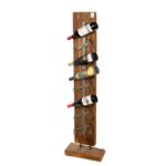 Een robuust, industrieel wijnrek om uw mooiste wijnen te tonen. 8 Flessen in totaal in een gerecycled teakhouten standaard met metalen houders.