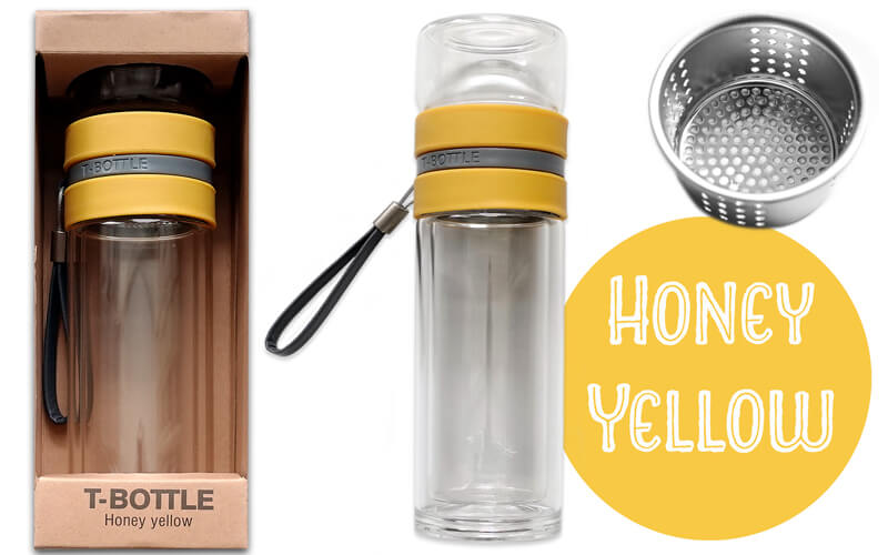 Ontdek de T-BOTTLE Honey Yellow, jouw ultieme metgezel voor het maken van verse thee met een vleugje eigen creativiteit.
