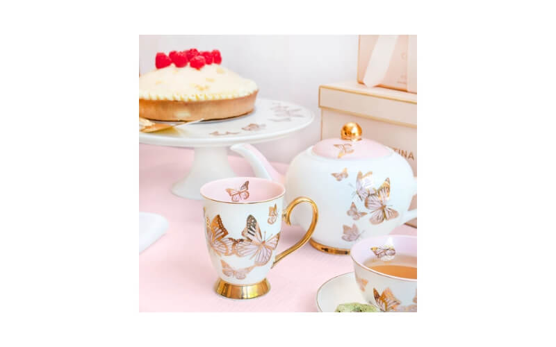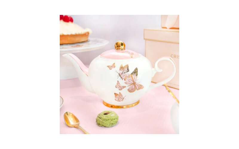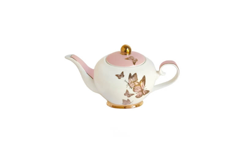 De theepot is met de hand vervaardigd en afgewerkt met schitterende details van echt 24 karaats goud. Elk exemplaar is individueel en uniek – geen massaproductie, maar ambachtelijke luxe. De subtiele vlinderaccenten en het glinsterende goud geven jouw tafelsetting een exclusieve uitstraling.
