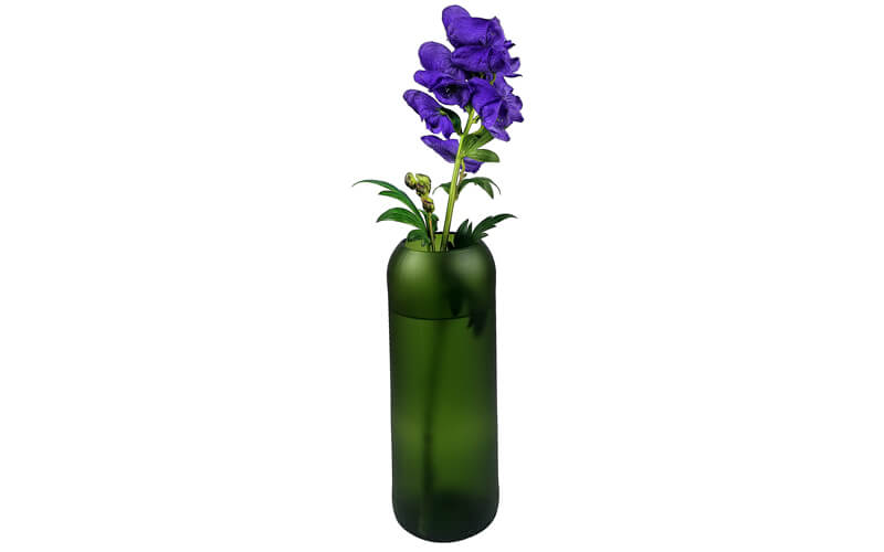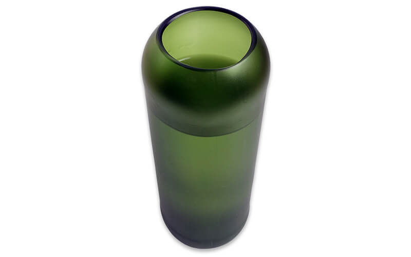 Vaas Culo Mat Flessengroen. Een vaas gemaakt van een oude wijnfles en daarna gezandstraald. Een leuk cadeau om te geven.