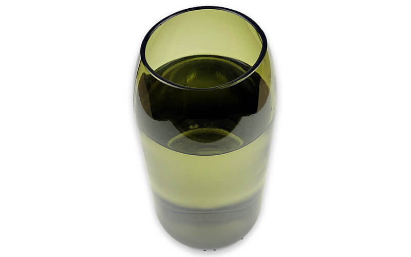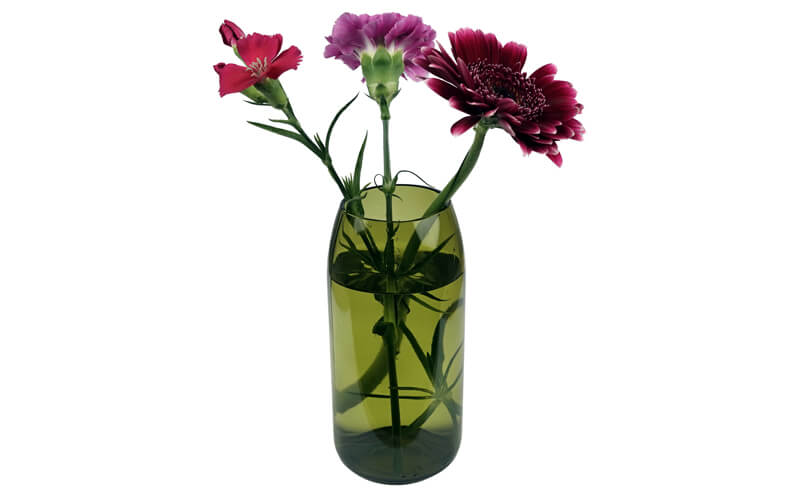 Vaas Culo Olijfgroen. Een vaas gemaakt van een oude wijnfles. Een leuk cadeau om te geven.