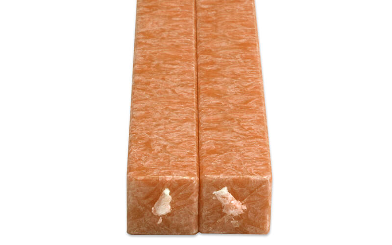 Vierkante Kaarsen Oranje 2 Stuks Amabiente. Duurzaam, geurvrij, roet- en druipvrij. Set van 2, 40 cm lang. Warm & stijlvol.