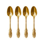 Vintage theelepeltjes Christina Re. Zij zitten verpakt in een set van 4 stuks. In een luxe geschenkverpakking. 24 karaat Goud verguld.