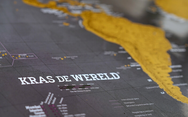 Onder de luxe gouden toplaag verschijnt een kleurrijke wereldkaart, waarbij elk land zijn eigen kleur heeft. Zo creëer je stap voor stap jouw persoonlijke reisverhaal. Perfect voor in huis, op kantoor of als blikvanger in je werkruimte.