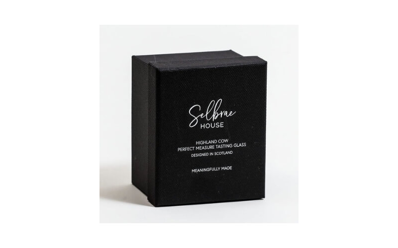 Whisky proefglas met maatverdeling en Highland Cow gravure van Selbrae House. Perfect voor whiskyproeverijen. Luxe cadeau in giftbox.