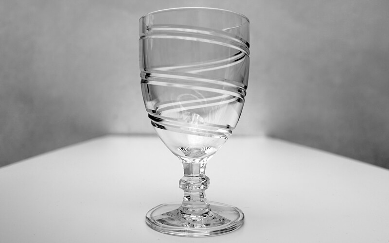 Het type wiskey glas nr. 1 heeft hetzelfde patroon in het glas als dat van het wijnglas!