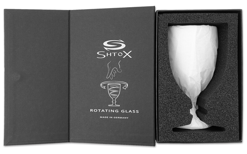 Een uniek draaiend wijnglas van het merk Shtox. Gemaakt van kristal uit de bekende fabriek van Nachtmann. Geef het iemand cadeau!