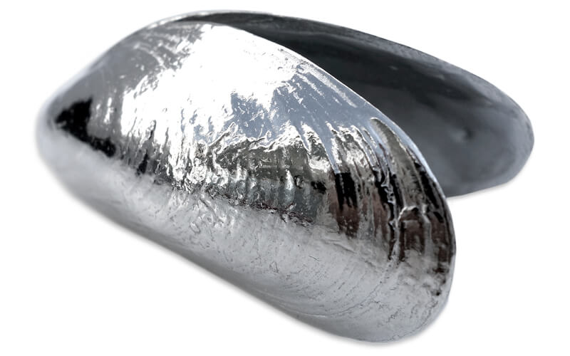 Door het speciale veertje werkt het bestek hetzelfde als een echte mosselschelp.
