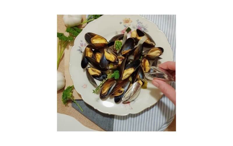Mosselen eet je niet met mes en vork. Als een knijpertje pak je met een lege mosselschelp het vlees uit de andere mosselschelp.