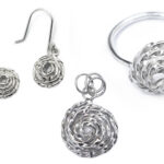 De set bestaat uit een ring, oorbellen, een hangertje van zilver. Elegant, sierlijk en opvallend.